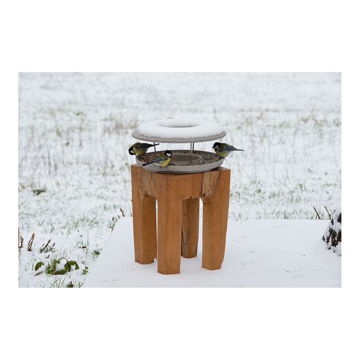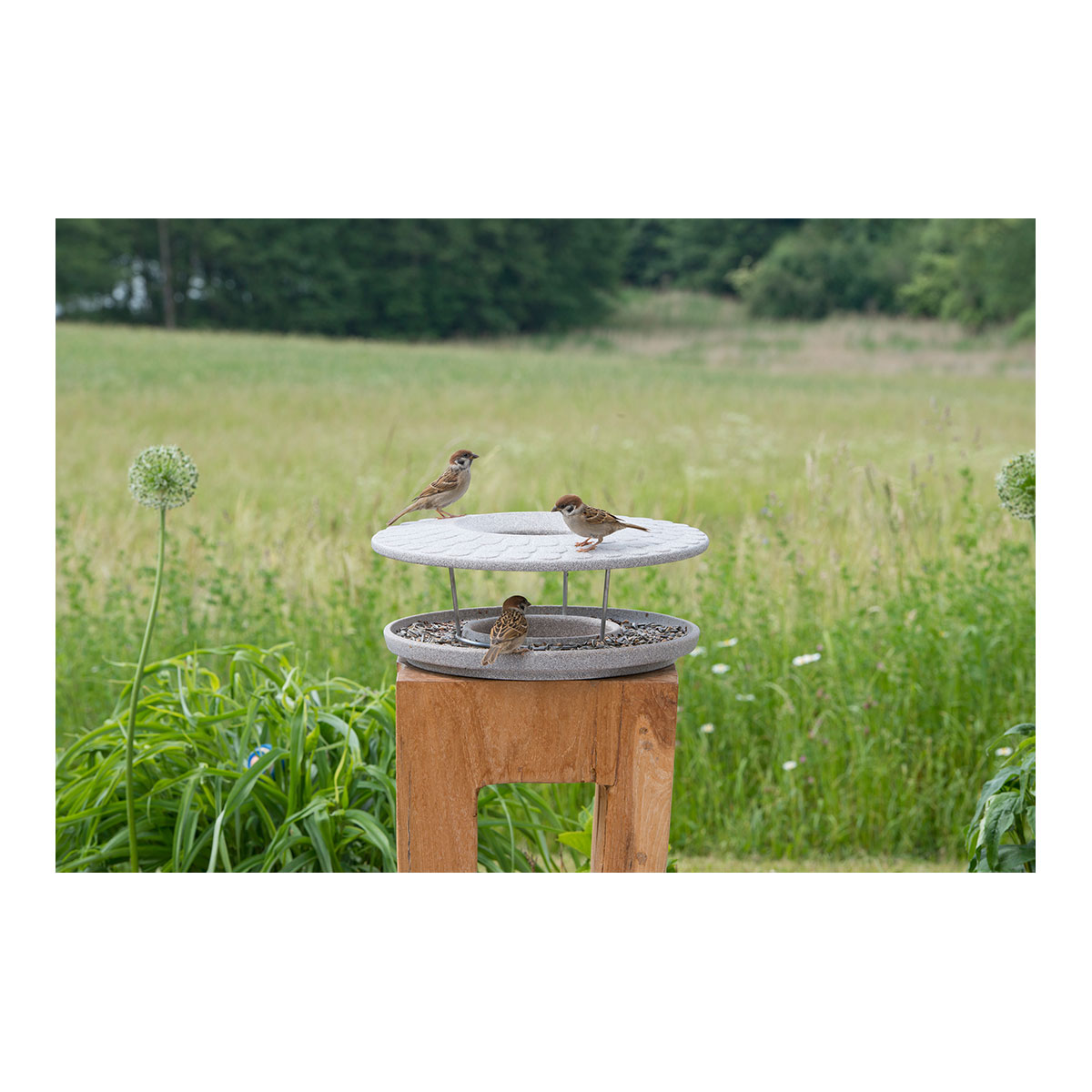 Das patentierte Futterhaus vereint artgerechte Fütterung mit modernem Design. Die offene Konstruktion ermöglicht den Vögeln einen sicheren Anflug von allen Seiten - und Ihnen faszinierende Einblicke beim Beobachten.