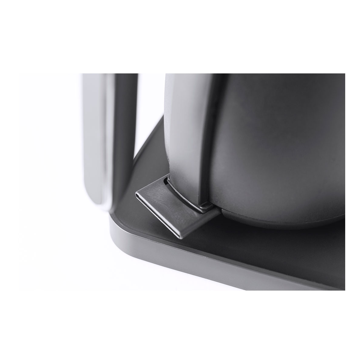Der Cool-Touch-Griff sorgt für sicheres Ausgießen, die rutschfesten Gummifüße garantieren einen stabilen Stand.